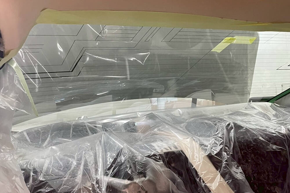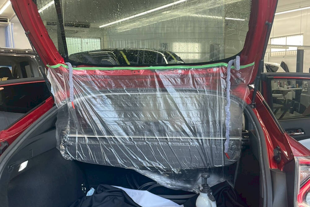 当社では、リアガラスへの施工は2枚3枚とを重ねた分割貼りではなく、1枚貼り施工を行っています。